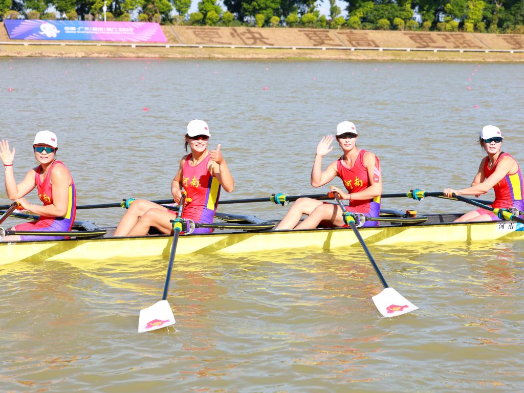 我校校友库玉婷、杨怡欣、张燕及在校生赵旋伊、孙志薇携队友为河南代表团夺得赛艇女子八人单桨有舵手项目铜牌