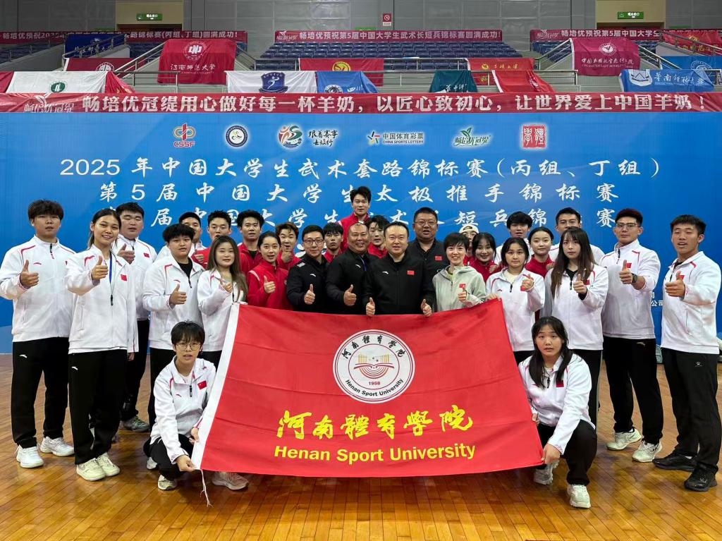 10月25日至11月1日,2025年中国大学生武术套路(丙组、丁组)锦标赛、第5届中国大学生武术长短兵锦标赛及第5届中国大学生太极推手锦标赛在南通体育会展中心举办,全国278所高校的3000余名选手同场竞技。河南体育学院作为河南体育人才培养核心、全国体育院校骨干,派出三支队伍参赛,成绩斐然。武术套路队:4金8银8铜领跑队员功底深厚,在赛场上大放异彩。金牌得主中,张志溢获男子丙A组其它太极器械冠军,严宁宁夺女子丁组32......
