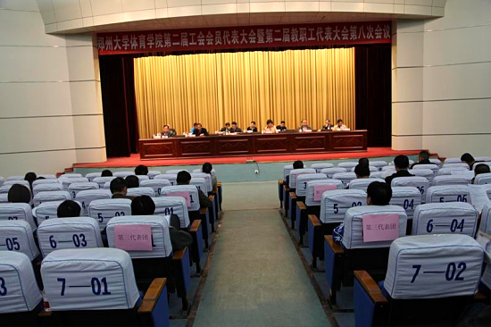 4月13日上午,郑州大学体育学院第二届工会会员代表大会暨第二届教职工代表大会第八次会议在我院学术报告厅隆重召开,学院领导、教代会正式代表和列席代表出席了本次大会。上午8:30,大会开幕,院党委书记魏真主持开幕式。会议听取和审议了巫兰英院长代表学院行政所作的题为《抢抓机遇 攻坚克难 全力推进学院科学发展》的工作报告,正院级调研员何祖新所作的《工会工作报告》以及工作人员宣读的《郑州大学体育学院申办河南......