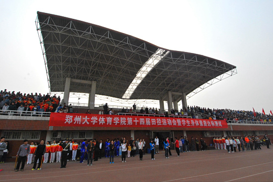 4月10日上午8:30,郑州大学2013年“阳光体育运动”田径运动会开幕式在新落成的田径场如期举行,我院巫兰英院长作为主席团成员参加开幕式,并在主席台前排就座。在开幕式入场式上,我院武术与民族传统体育系学生献上武术套路表演,博得了现场观众的满堂喝彩和掌声;运动系学生组成的方块队,在经过主席台时,变换成“中国梦强国梦”、“ 体育梦 我的梦”字样的队形;两支队伍的表演,表达了我院师生的美好愿望,展示了体院......