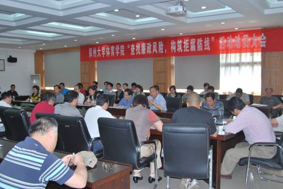 我院召开“查找廉政风险,构筑拒腐防线”活动动员大会 5月31日下午,我院在第三会议室召开“查找廉政风险,构筑拒腐防线”活动动员大会,并下发了《中共郑州大学体育学院委员会关于开展“查找廉政风险,构筑拒腐防线”活动的实施意见》。...