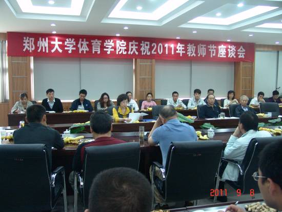 我院举行教师节座谈会 为庆祝第27个教师节,根据院党委《郑州大学体育学院关于2011年庆祝教师节有关工作的通知》安排,我院于9月8日上午在学院第三会议室召开了2011年教师节座谈会,院领导何祖新、周毅刚及来自学院各教学单位和机关的教师代表、退休教师代表、学生代表等40余人参加了会议。...