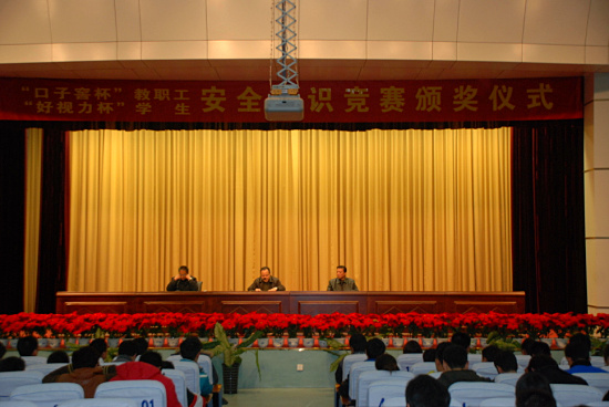 我院成功举办安全知识竞赛活动 11月29下午16:00,在我院学术报告厅,400余名获奖师生参加了“口子窖杯”教职工安全知识竞赛和“好视力杯”学生安全知识竞赛颁奖仪式,副院长张绍通,保卫处处长李金豹出席颁奖仪式,颁奖仪式由保卫处唐晨老师主持。...