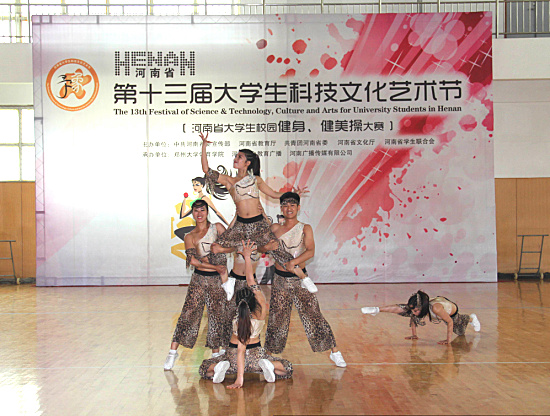 河南省第十三届科技文化艺术节校园健身健美操大赛在我院举办