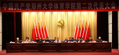 上午8:30,大会开幕式在学术报告厅隆重举行。河南省体育局党组书记、局长彭德胜,河南省委省直工委巡视员李汴霞,郑州大学党委副书记、工会主席李兴成,河南省委组织部科教企业干部处处长何伟,河南省委高校工委组织干部处副处长宋辉等上级部门领导应邀出席开幕式并在主席台前排就座。开幕式由院党委书记魏真主持。大会在雄壮的国歌声中开始,巫兰英院长致开幕词。省委组织部、省委省直工委、郑州大学、省体育局等上级部门领导在会上作了热情洋溢的讲话,对学院事业发展提出了要求和希望。何伟处长希望,“学院新一届党委要以这次党代会召开为机遇,团结带领全校师生员工,立足高等教育改革发展的新形势、新任务、新要求,明确新思路,抢抓新机遇,谋求新发展。”李汴霞巡视员提出,要“充分发挥思想政治工作优势、组织优势和联系群众优势,引导和凝聚广大师生员工以更加振奋的精神,更加坚定的信心,更加创新的思维,更加务实的作风,扎实工作,拼搏进取,不断开创郑大体院工作的新局面”;李兴成副书记认为,“近年来,体育学院各项事业快速发展,取得了令人瞩目的成就。”尤其是“培养的学生运动员在奥运会、亚运会、全运会及全国大运会上,都有出色的表现,取得了突出的成绩,为郑州大学和我省赢得了荣誉。”彭德胜局长号召,“学院全体党员和师生员工,要在新一届党委会领导下,以这次党代会为新的起点,进一步增强革命感、使命感,展现主人公精神,发挥独立性作用,脚踏实地、锐意进取,开创郑大体院更加美好的未来。”