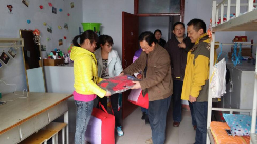 巫院长一行在校区领导陪同下到学生宿舍看望慰问同学们,并为家庭困难的学生发放棉衣棉被。巫院长代表学院向同学们表示亲切的慰问,并勉励家庭困难同学们要勇于面对困难,自立自强,同时学院也会尽力帮助家庭经济条件困难的同学完成学业。