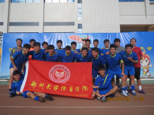 来自全省13所高校14支代表队的280名运动员参加甲、丙两个组别的比赛。我院足球队夺得男子丙组亚军,闫冰荣获优秀教练员,张光阳、张智通、焦政豪、刘晨阳、周世磊5名学生荣获优秀运动员称号。