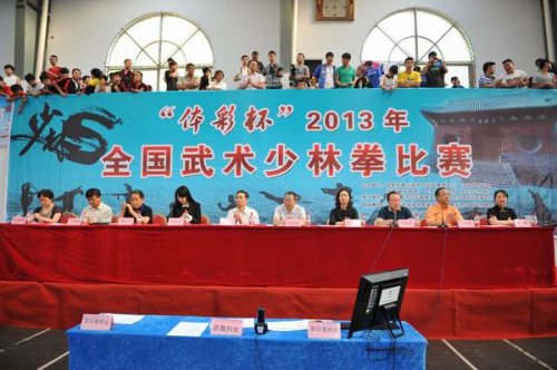 上午,“体彩杯”2013全国武术少林拳比赛在我院登封校区综合体育馆隆重开幕。国家体育总局武术运动管理中心副主任、中国武术协会副主席陈国荣,国家体育总局武术运动管理中心社会部主任张玉萍,副主任张晓明,我院党委书记魏真,河南省武术运动管理中心党总支书记刘宝祥等领导出席了开幕式。
