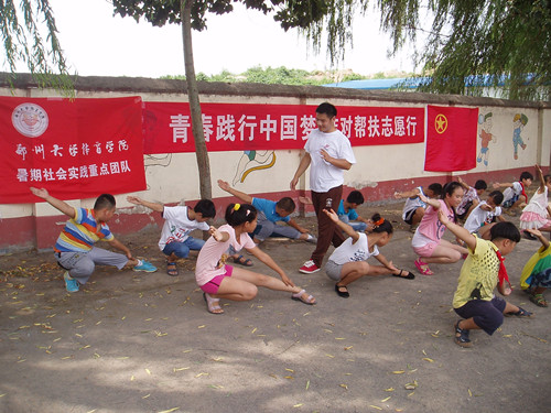 按照活动计划,上午9时许,工作人员来到弓庄小学,受到了村领导、学校师生的欢迎。活动中,学院志愿者以趣味性的故事形式,为小朋友们解析了对中国梦的认识和理解,小朋友们在互动环节也积极讲述了自己的梦想;在田径场上的树荫下,志愿者带领小朋友们进行了拓展游戏培训和五步拳的学习;活动内容有趣活泼,现场气氛轻松欢快。活动过程中,学院志愿者向小学生们赠送了书包、文体用品等。
