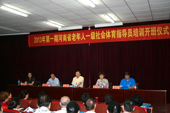 —28日,由河南省老年人体育协会、河南省体育局主办,我院承办的2013年河南省第一期老年人一级社会体育指导员技术等级培训班成功举办。省老年体协秘书长王玮,我院院长巫兰英,我院正院级调研员、省老年人体育研究中心主任何祖新同志出席开班仪式并先后讲话。