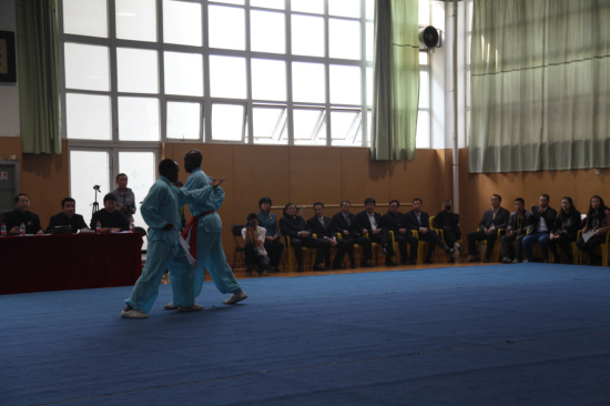 授牌仪式结束后,在我院领导陪同下,高小军主任一行亲临我院武术段位考试点现场,观看了正在进行的海外武术爱好者参加的少林拳段位考试。