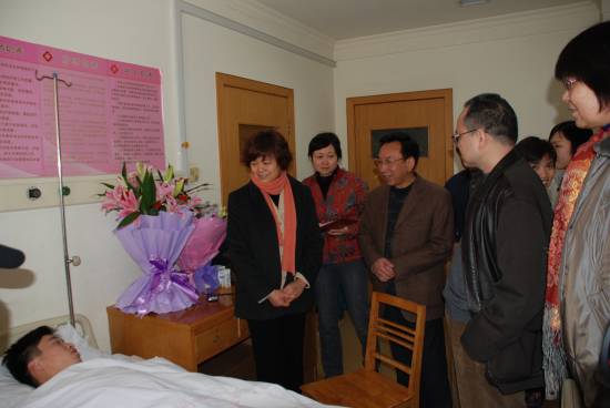 3月12日上午,为挽救苏州一位素不相识的白血病患者的生命,我院2008级体育教育系学生孙贤躺在河南省人民医院的病床上,进行干细胞采集,为一名年轻的白血病患者捐献“生命种子”,捐献自己的造血干细胞。河南省红十字会秘书长黄永泽、郑州大学体育学院院长巫兰英、副院长张绍通,体育教育系党总支书记张爱荣、团委副书记刘亚荣在河南省红十字会相关负责同志的陪同下,专程赴河南省人民医院看望慰问孙贤同学,省红十字会秘书长黄永泽为其颁发荣誉奖牌证书,巫兰英院长代表学院送去5000元慰问金。孙贤是全省第258例,全国第2668例造血干细胞捐献者,也是郑大体院第一位捐献造血干细胞的学生,他的行动也成为了现在校园里最感人的话题。