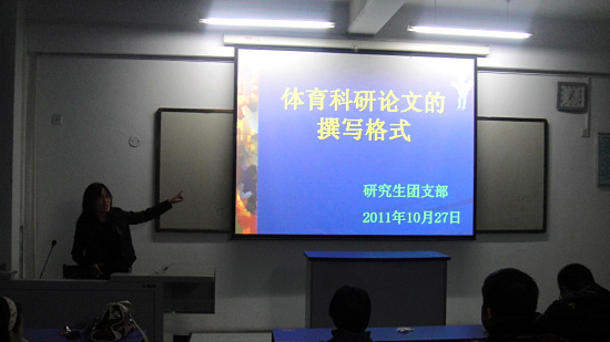 毕业论文是毕业生总结性的独立作业,是学生在校学习期间学习成果的总结。研究生根据自己的专业特长,于10月27日晚在303教室举办了论文写作讲座。从论文选题、论文格式、论文内容等方面详细为在场同学讲解了论文写作要点,帮助同学们提升写作能力。
