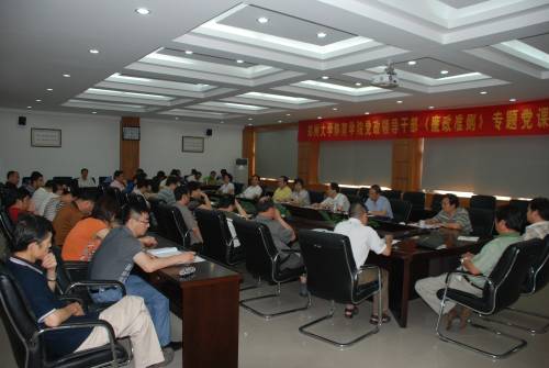 为了深入学习贯彻《中国共产党党员领导干部廉洁从政若干准则》,不断推进我院党员领导干部理论学习和反腐倡廉教育。7月6日下午,院党委书记魏真在第三会议室以《廉政准则》为主题,为学院副科级以上党员领导干部作专题讲座。