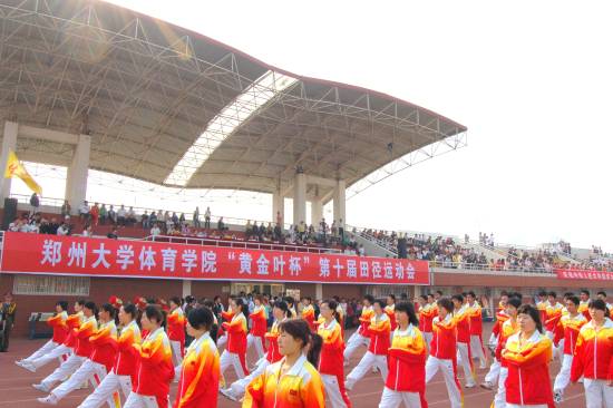 4月29日上午,院田径场彩旗飘飘,礼炮齐鸣,郑大体院“黄金叶杯”第十届田径运动会如期隆重开幕。省体育局党组书记彭德胜、省教育厅体育卫生艺术教育处处长郭蔚蔚、学院领导、省体校校长刘言和及学院全体师生员工参加开幕式。开幕式由院党委书记魏真主持。