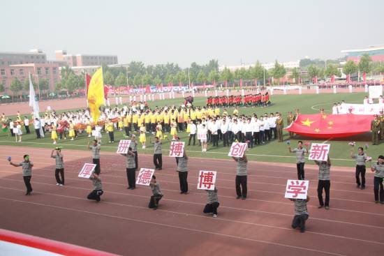 在斗志激昂的运动员进行曲中,国旗方队、刀旗方队、花束队、裁判员代表队、教职工代表队、各院系代表队、研究生代表队及省体校代表队迈着矫健的步伐,依次步入会场,各代表队特色鲜明的入场表演,展现了我院师生意气风发的精神风貌,表达了对国庆六十周年的良好祝愿。