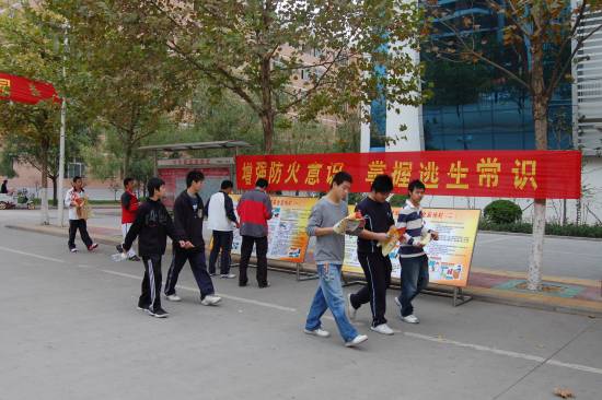 4、11月6日,组织我院义务消防队员在教学楼、宿舍楼张贴消防宣传标语、消防安全与逃生自救宣传挂图,并在校园内发放消防安全宣传资料400余份。