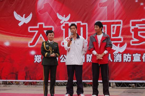 5、11月9日上午,组织我院义务消防队员及体育系、旅游与外语系等50余名学生到郑州市同乐广场,参加惠济区消防大队组织的“关注消防 珍爱生命 共享平安”的消防宣传活动,消防官兵就消防器材的使用、火场逃生自救、消防常识等向我院学生做了详细讲解。