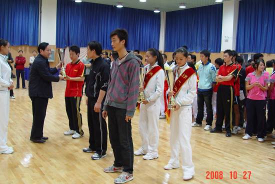 10月27日下午,河南省大学生“华光”体育活动第五届乒乓球锦标赛团体项目比赛全部结束,在我院综合训练馆乒乓球馆举行了颁奖典礼,我院巫兰英院长、刘卫华副院长出席颁奖典礼,并为获奖代表队颁奖。颁奖典礼由省教育厅体卫艺处副处长高翔主持。