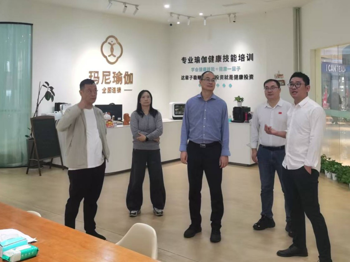 玛尼瑜伽创始人、董事长陈怀一对张学领一行表示热烈欢迎,并全程陪同调研交流。考察组先后走访了玛尼瑜伽苏州总部、茅山研修基地及常州两家直营门店,系统了解企业发展历程、运营模式与人才战略。在苏州总部,重点听取了企业十八年发展脉络、全国近百家直营店布局及标准化管理体系,深入考察其“知行商学院”在人才培养方面的创新实践;在茅山研修基地,实地观摩教学场地与学员生活配套设施,体验“山水间修行”的特色教学环境,对“教学—实践—成长”一体化育人模式表示赞赏;在常州直营门店,与一线运营团队及优秀毕业生代表座谈,精准把握当前市场对瑜伽人才的能力要求与职业发展路径。