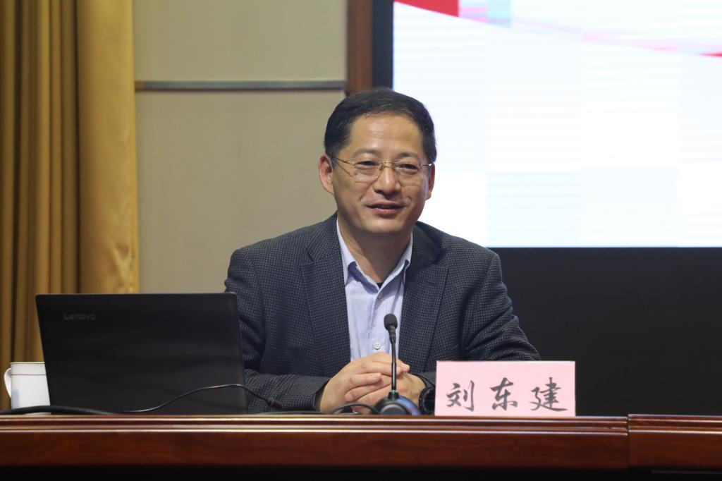 本次报告会特邀中国传媒大学马克思主义学院党委书记、博士生导师、北京市思想政治理论课特级教授刘东建作专题辅导。报告会上,刘东建教授以贯彻四中全会精神 推动高质量发展——学习<习近平谈治国理政>第五卷为题,从深刻领会著作的重大意义、准确把握核心内容、推动学思践悟走深走实三个维度展开系统讲解。他结合丰富的理论研究成果与鲜活的实践案例,将宏理论与具体实际相结合,对《习近平谈治国理政》第五卷的精髓要义进行了深入浅出的解读,为在场师生带来了一场思想深刻、富有启发的专题辅导