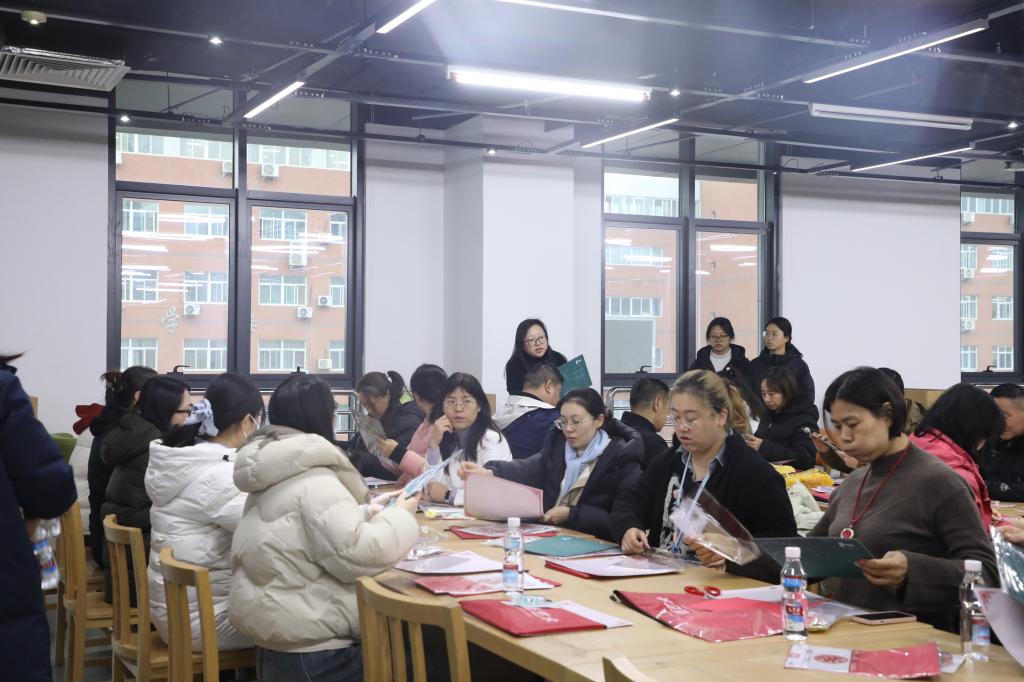 实践体验环节将活动推向高潮。在图书馆二楼举办的“匠心传非遗 冰雪绽风华”冰雪主题剪纸活动中,代表们在非遗技艺老师的指导下,亲手执剪,以纸为媒,巧妙融合冰雪运动特有的速度、力量与优美姿态于传统剪纸艺术之中。一幅幅生动活泼的滑雪、滑冰等主题剪纸作品逐渐成型,实现了非遗手工技艺与当代冰雪运动文化的创造性结合,也让参与者在亲手制作中体会到非遗传承的乐趣与匠心精神。