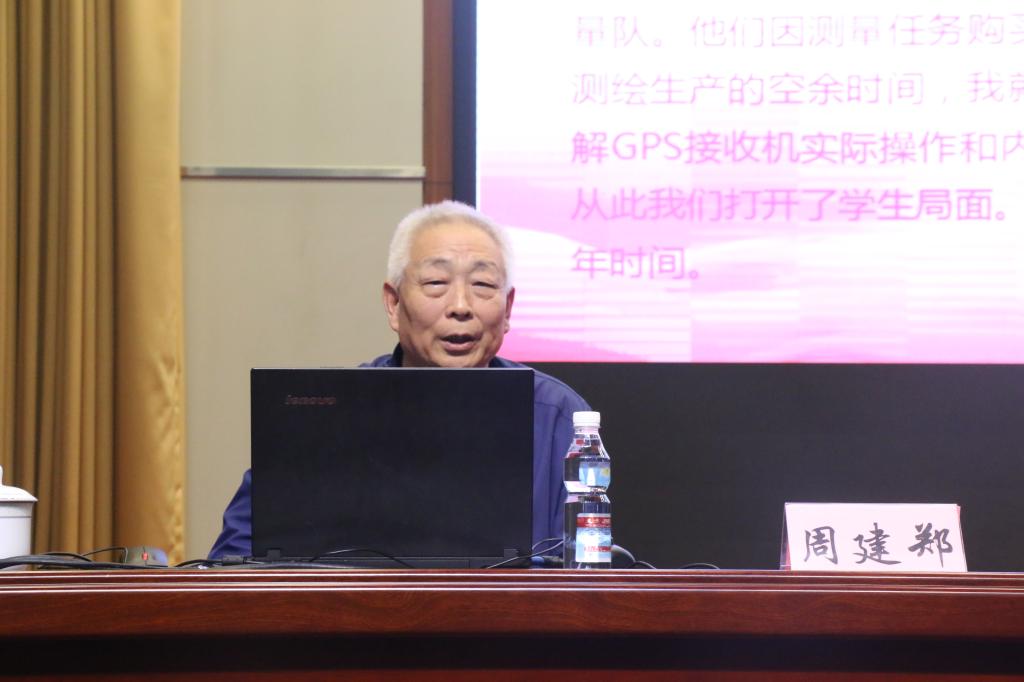 报告会上,周建郑教授以《测神州大地经纬,绘祖国美好蓝图》为题,分享了自己40余年的教育教学生涯。他辛勤耕耘在教学一线,学以致用,将测绘知识与社会生产深度结合,用教育改变学生命运,培养工匠人才无数,助力祖国建设、援助“一带一路”,为河南测绘走出国门做出巨大贡献。周建郑教授以真挚的情感和自身经历,生动阐释了教育家精神的深刻内涵,全面展现了新时代教育工作者的使命担当。